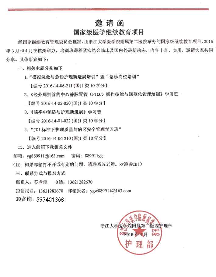 - 医疗护理学习班开课(3-4月 )国家级1类10学分,函请大家共同分享。